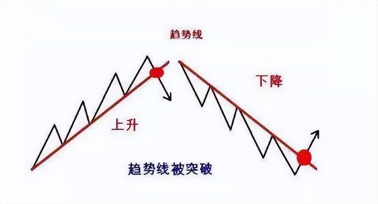 如果一直守着最初那条趋势线,可能上升结束后的下跌趋势都快走完了,价格仍然没有跌破趋势线,那这条趋势线就没有意义了。